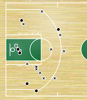 Contrast those shot charts above with his work against Thibodeau and the Celtics last year: